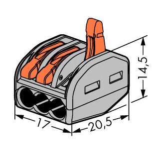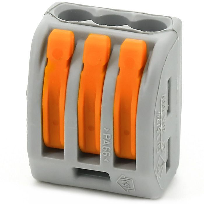 Соединительные клеммы PCT-213 (аналог WAGO 222-413) (трехконтакный) используются для монтажа электропроводки и позволяют без проблем соединять ответвление в электроцепях переменного тока. Клеммы Ваго являются инновационным продуктом немецкой компании с одноименным названием. Они не просто упрощают процесс монтажа и демонтажа электросети, но и исключают возможность обрыва линии, из-за некачественного соединения проводов.