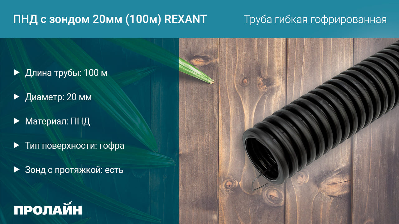 Труба гибкая гофрированная ПНД с зондом 20мм (100м) REXANT